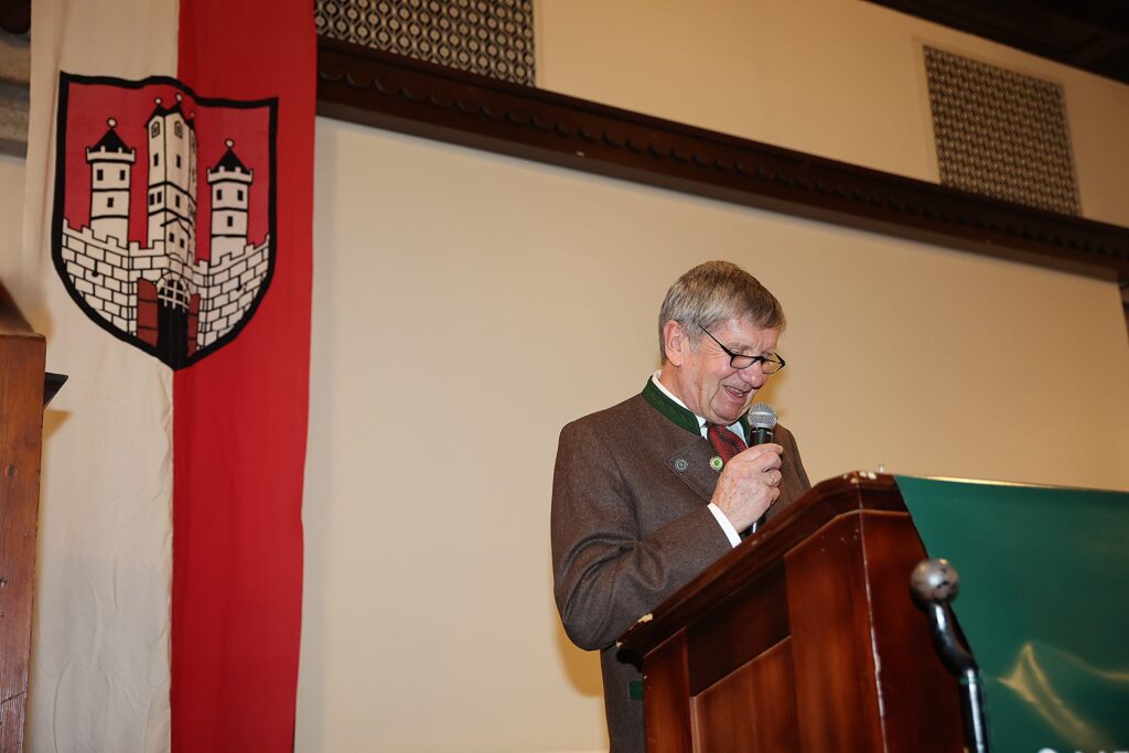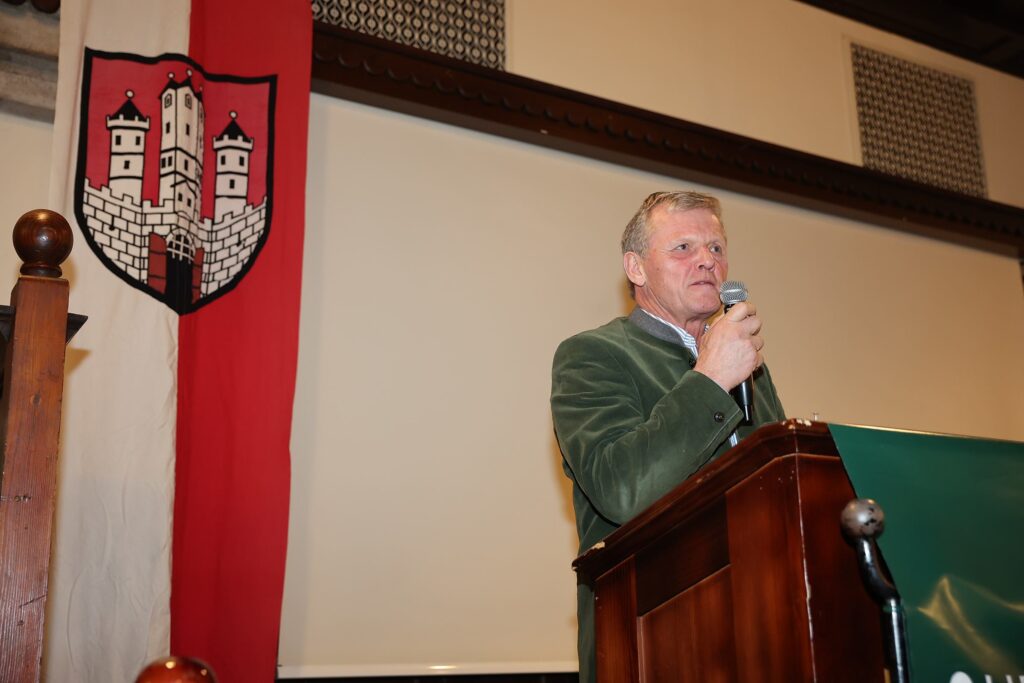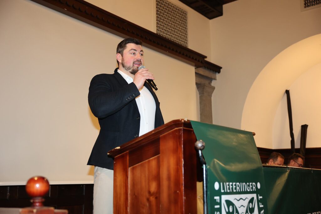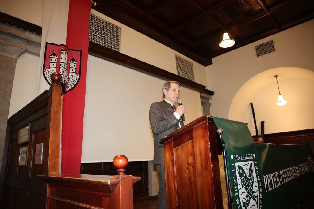 Die zahlreichen Vertreter aus der Fischerei wurden vom Landesfischermeister Gerhard Langmaier (hier am Rednerpult) „angeführt“
