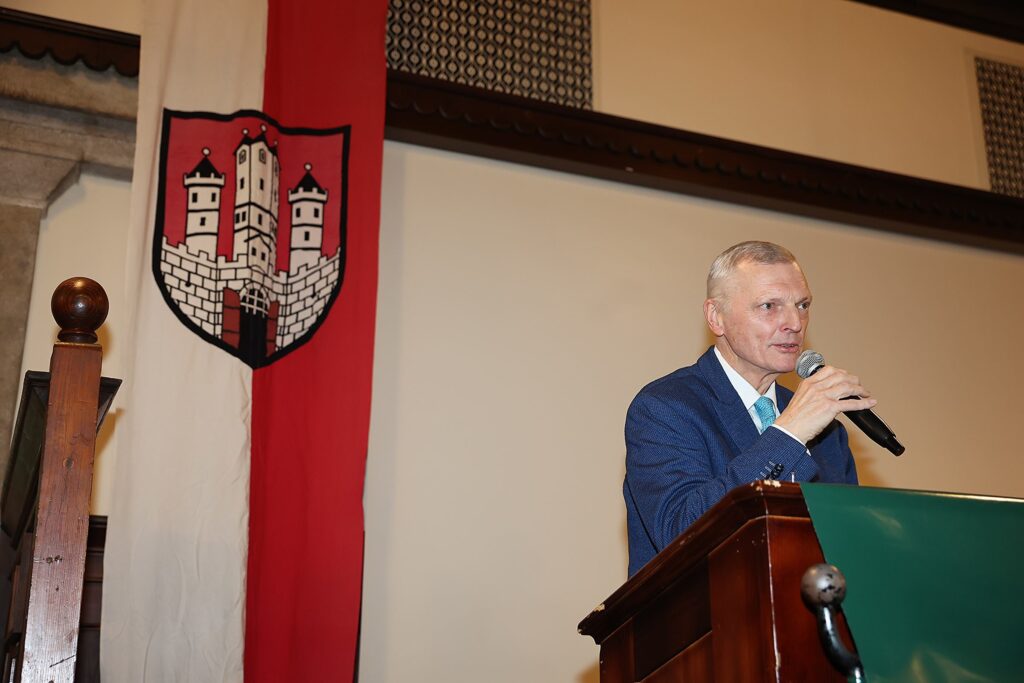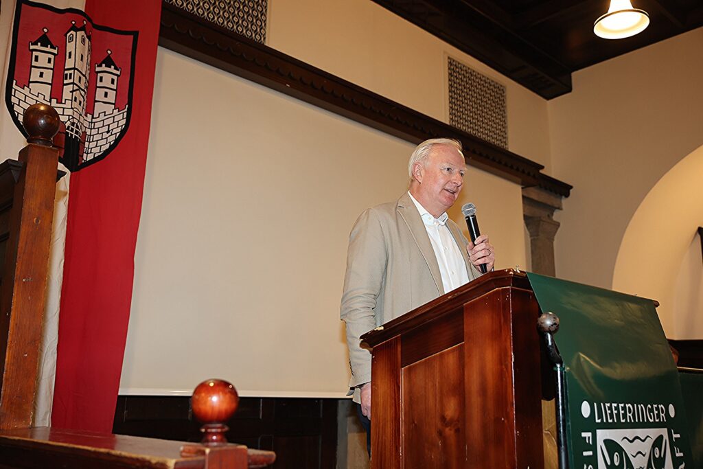 Der Kuratoriumsvorsitzende Gerhard Hatheier eröffnete die Versammlung und begrüßte die Ehrengäste aus Politik und Fischerei und bedankte sich bei diesen für ihre Grußworte.