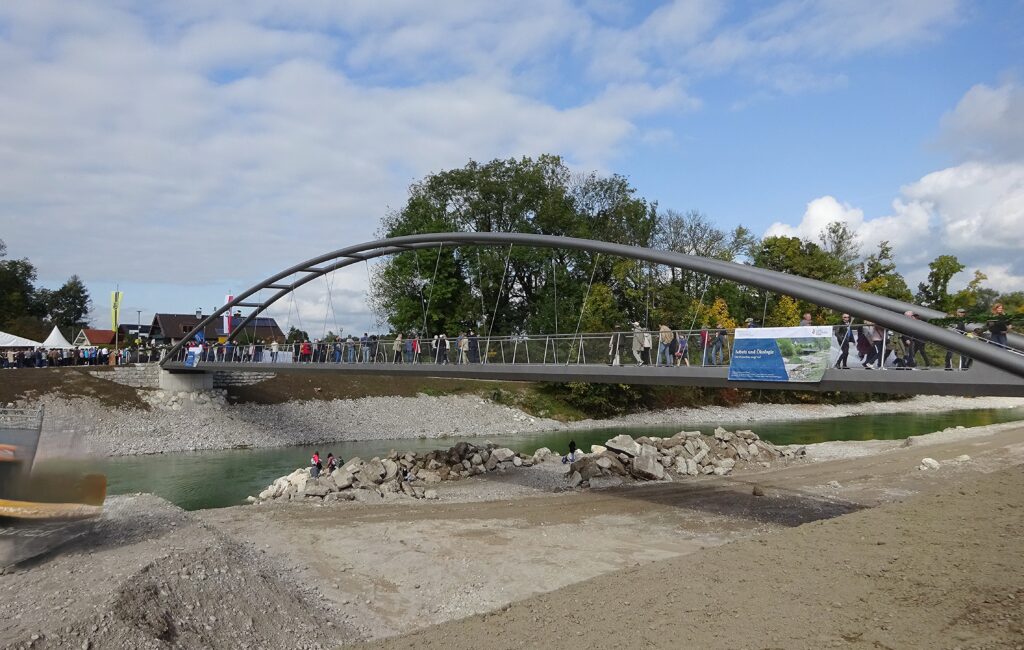 Durch die Aufweitung der Saalach und Sanierung des Uferschutzes wurde es auch notwendig, den sogenannten Siezenheimersteg neu zu bauen.