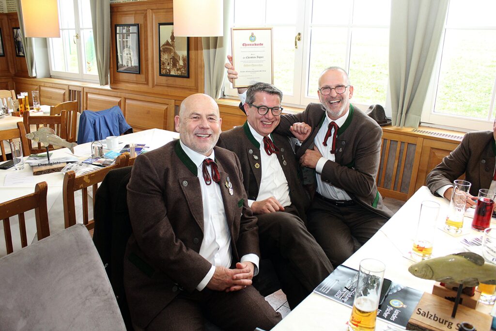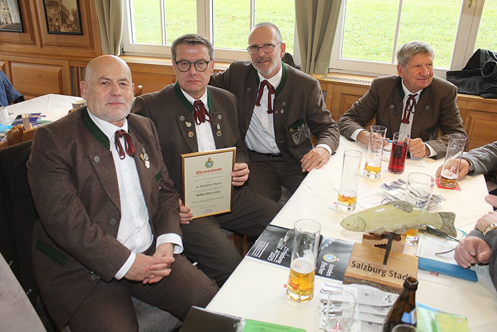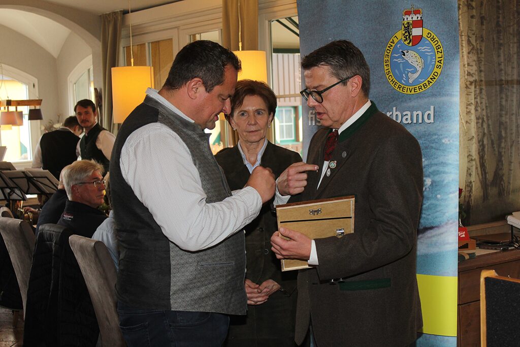 Als Träger des silbernen und des goldenen Ehrenzeichens der Peter Pfenninger Schenkung, sowie als Träger des silbernen Ehrenzeichens des Landesfischereiverbandes wurde nun unserem Innungsmitglied und Kassier, Herrn Dipl.-Ing. Christian Aigner, anlässlich des Landesfischertages das Goldene Ehrenzeichen des Landesfischereiverbandes verliehen.